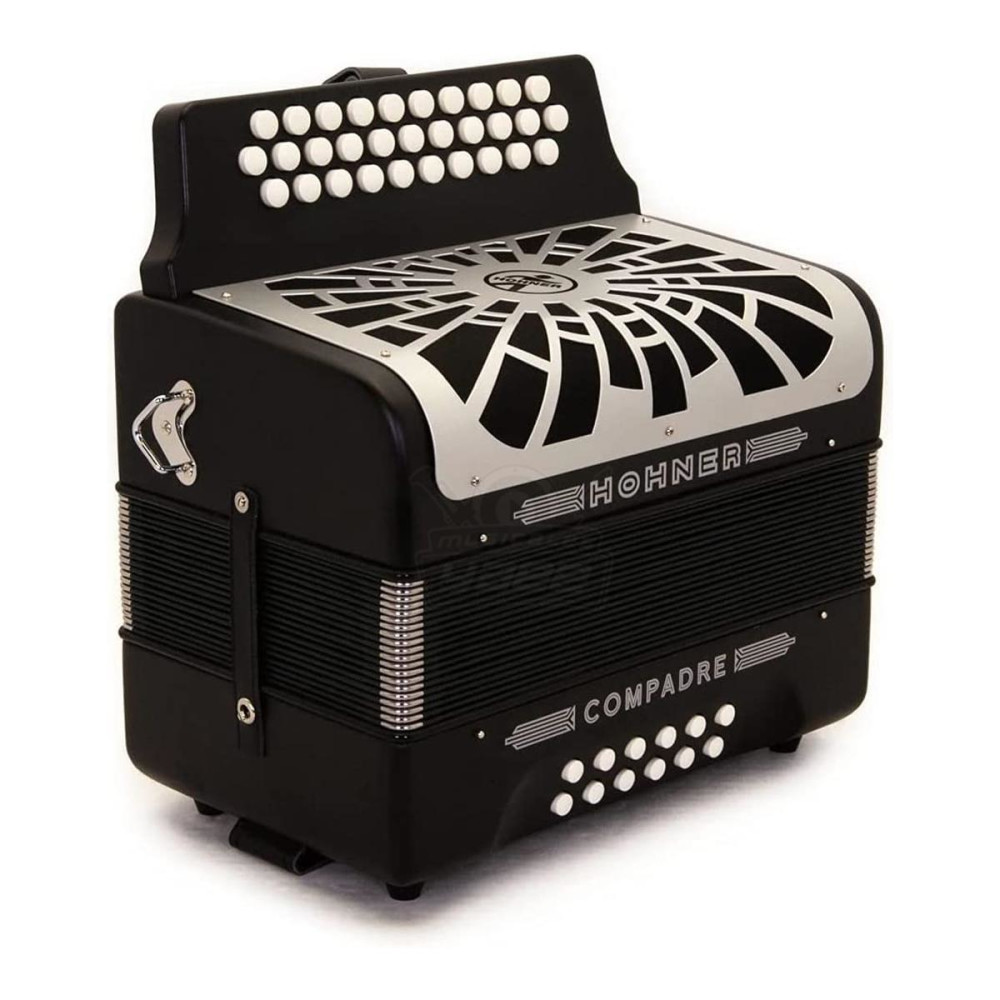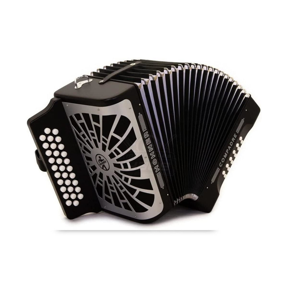 Acordeón Hohner Compadre negro con afinación en Fa, Sib y Mib.