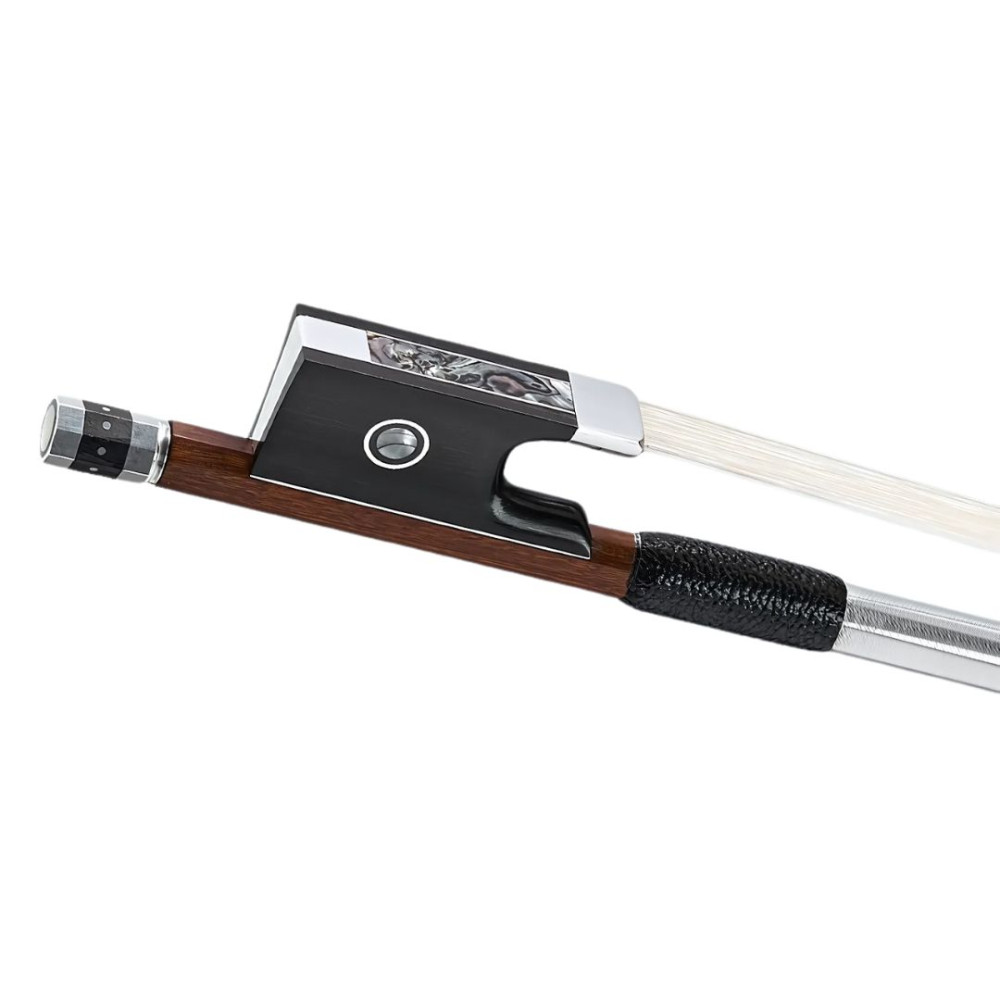 MAESTRO ***-W.E. DORFLER-PERNAMBUCO 1ª CALIDAD-NUEZ EBANO-MONTADO EN PLATA-OJO PARIS-TORNILLO CON INCRUSTACIONES-HEMBRILLA PLATA – OCTOGONAL