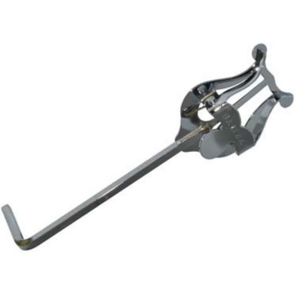 Atril de marcha para trompeta y fliscorno. Atril con pie curvado, largo en forma de L. Muelle de acero. Tamaño NORMAL, las medidas de la lira son 55 x 45 mm. Atril reforzado con pie de latón para conferirle mayor fortaleza. Este atril debe colocarse en el portatril del instrumento. Acabado cromado. Peso aproximado 37g. Fabricado en España.