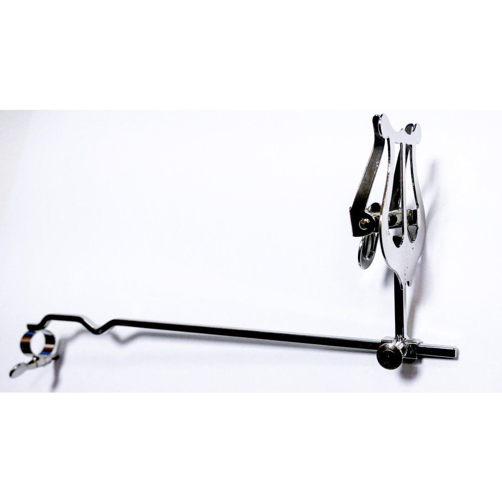 Atril de marcha para trombón con argolla y largo regulable, niquelado.