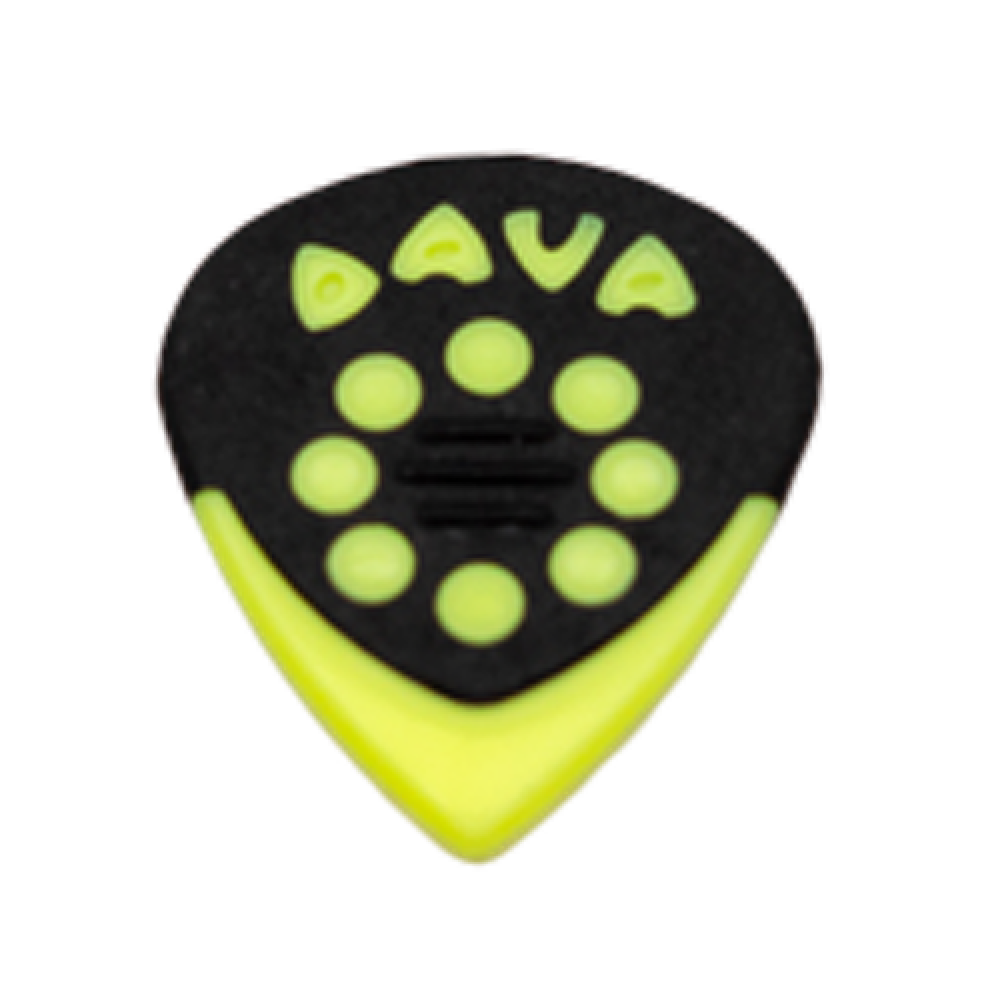 Bolsa de 6 púas de nylon Dava Control Jazz Grips . Estas púas de nylon cuentan con una punta afilada y empuñadura de goma para mayor control y precisión en las ejecuciones de las piezas