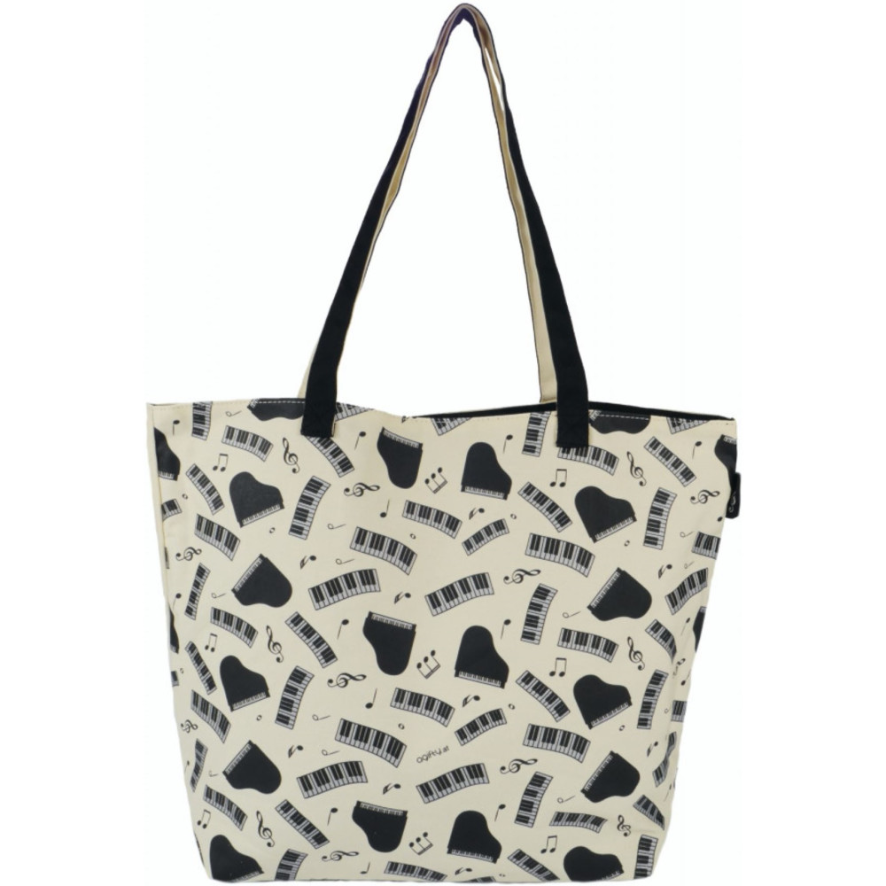 Bolsa asa al hombro tipo City Shopper natural con adornos de pianos y notas