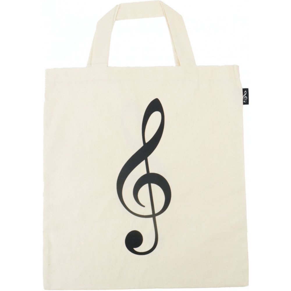 Bolsa con asa color natural adornada con dibujo de clave de sol en negro. Esta bolsa multiusos es perfecta tanto para llevar tus partituras como incluso tu atril.