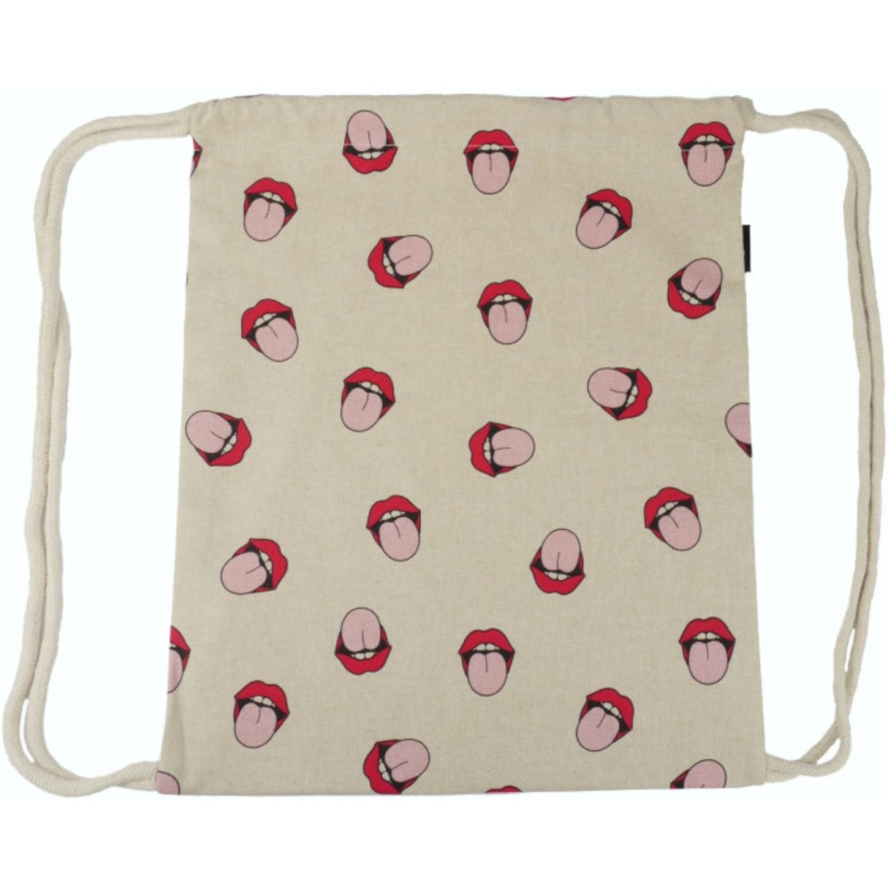 Bolsa tipo saco natural con adorno «Rocky Kiss». Este modelo está impreso por ambas caras e incluye cierre con cordón.