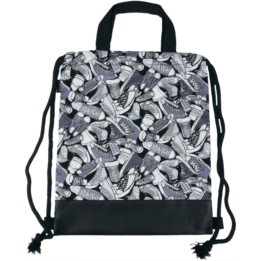 Bolsa tipo saco negra con adorno «Canvas Shoes». Este modelo está impreso por ambas caras e incluye cierre con cordón.
