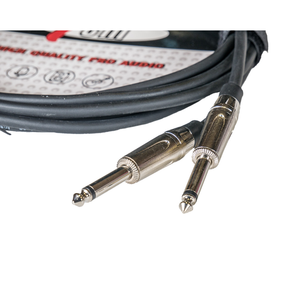 Cable de audio tipo Jack-Jack con conector de níquel, ideal para grabaciones de estudio y directos.