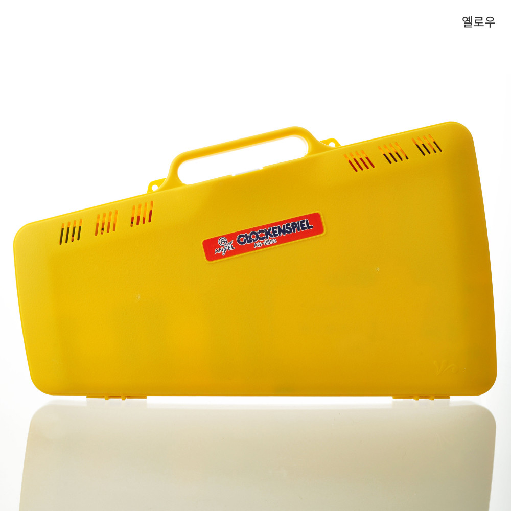 Carrillón cromático de 25 teclas de colores diferentes, con maletín amarillo de plástico.