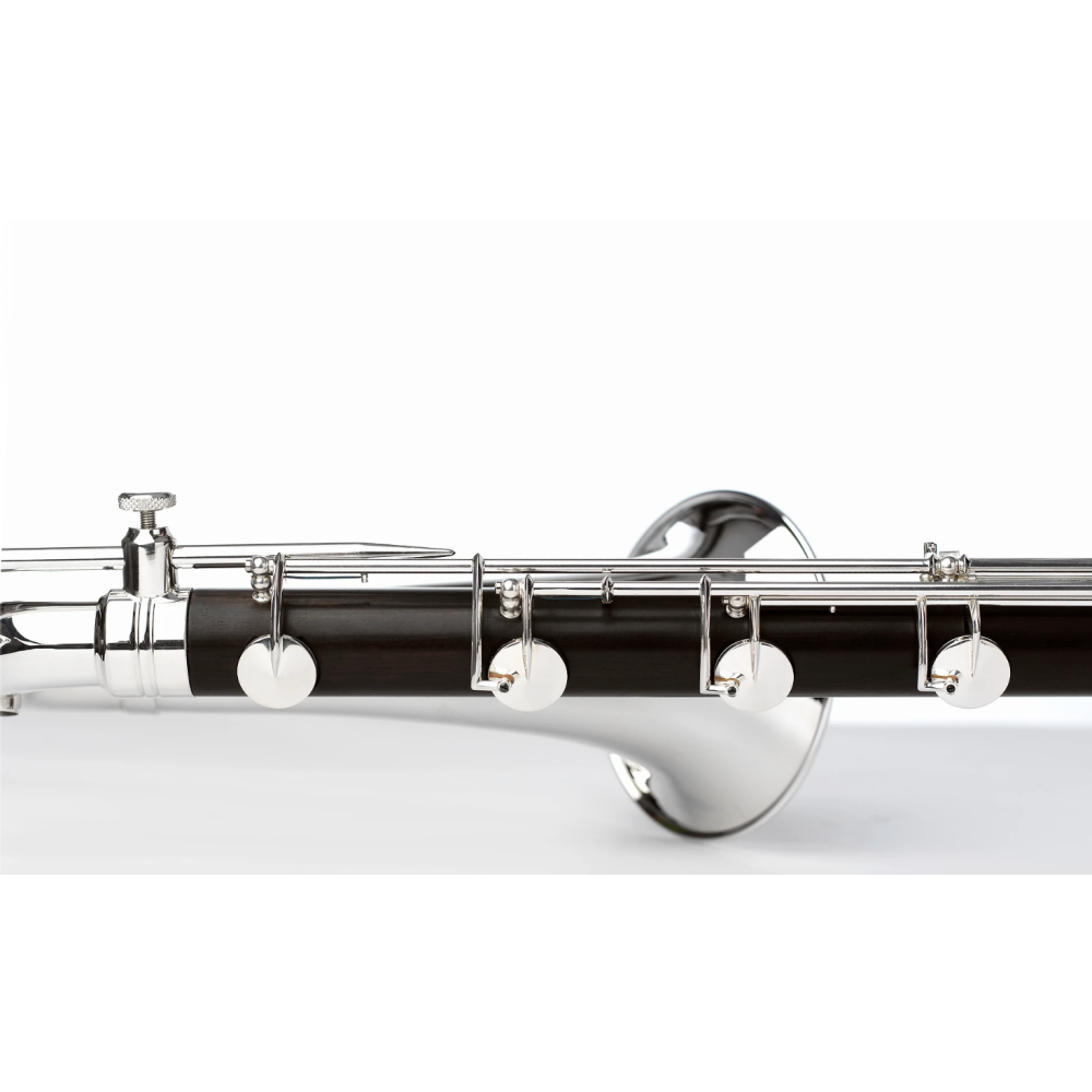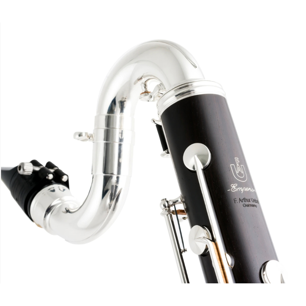 El clarinete bajo Uebel Rêve está construido con madera de granadillo secada y curada naturalmente, y presenta un diseño excepcional para una ejecución precisa. Cuenta con un cuello ajustable, registro hasta Do grave, llaves de resonancia y mecanismos plateados en plata, con un reposapulgar ajustable con anillo para correa. Además, el taladro «Rêve» y el emblema de plata esterlina aportan elegancia y un sonido dulce y proyectado.