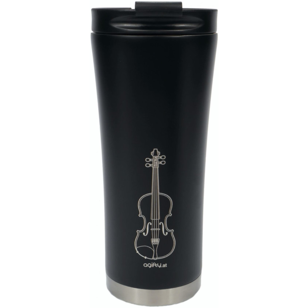 Termo taza (Coffee Termo Mug) de 500 miligramos negro con adornos de violín en plateado