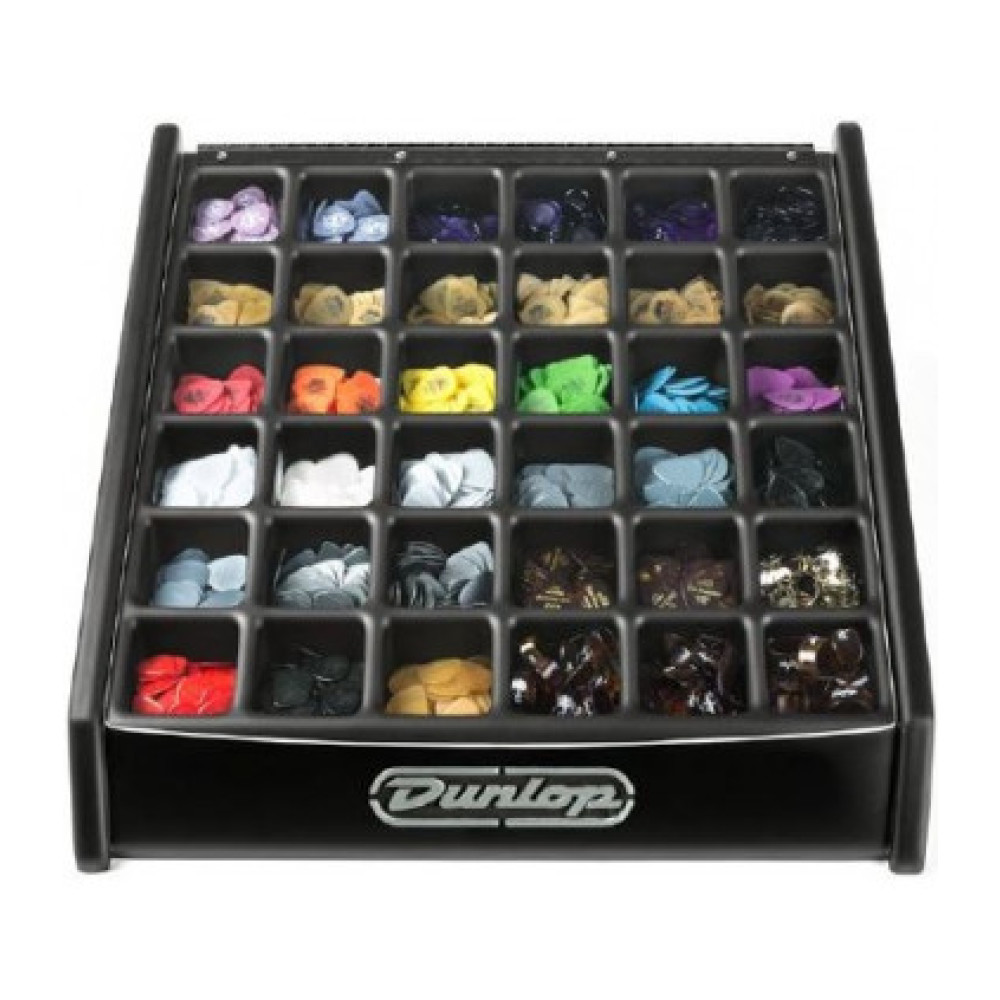 Expositor de Plástico color negro para almacenaje de 1.208 púas; con 36 compartimentos y modelos varios.