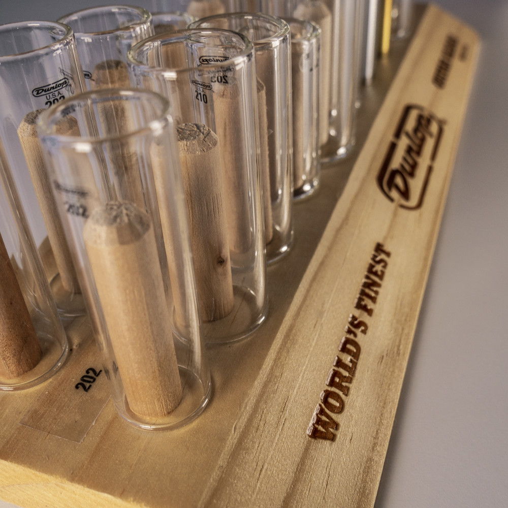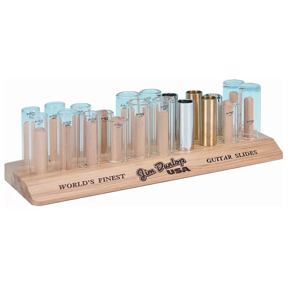 Expositor de madera Dunlop con capacidad para 20 Slides vacío.