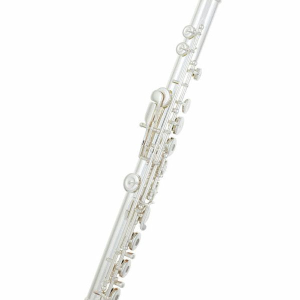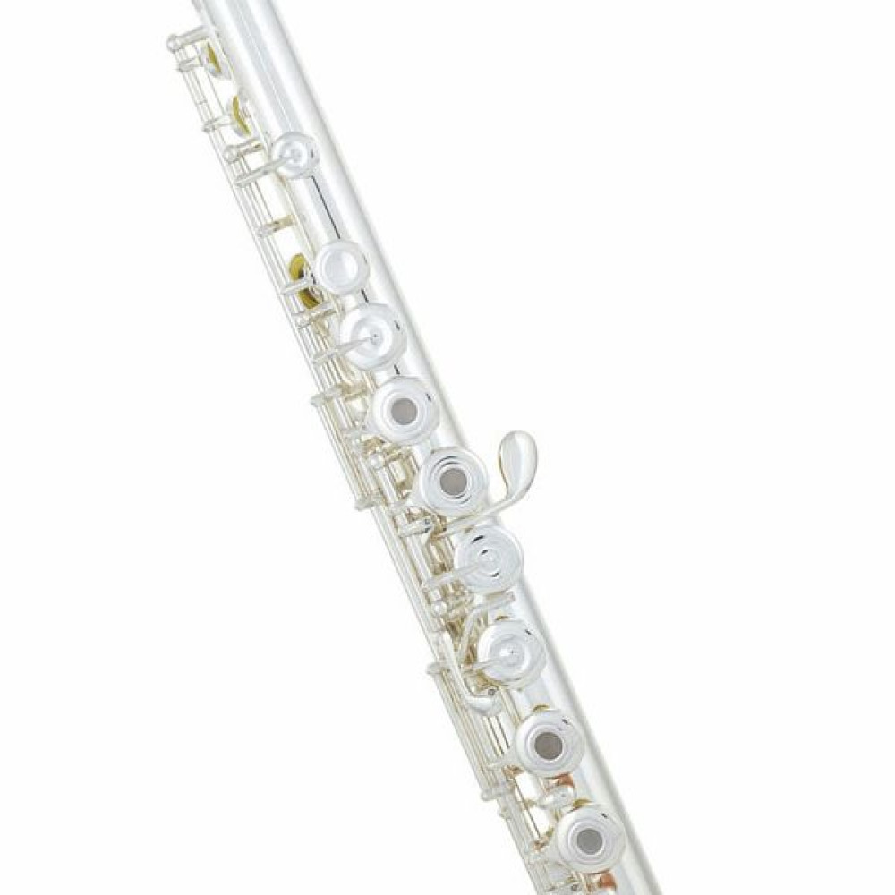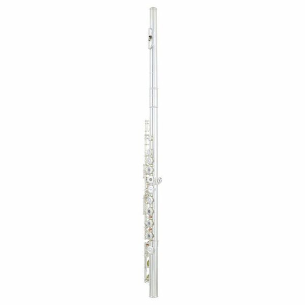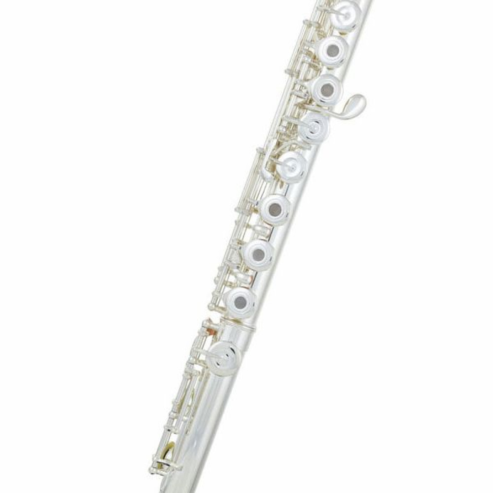 La flauta Pearl 505-RE tiene el cuerpo y la cabeza plateada. Además tiene el mecanismo de Mi y los platos abiertos y desalineados.