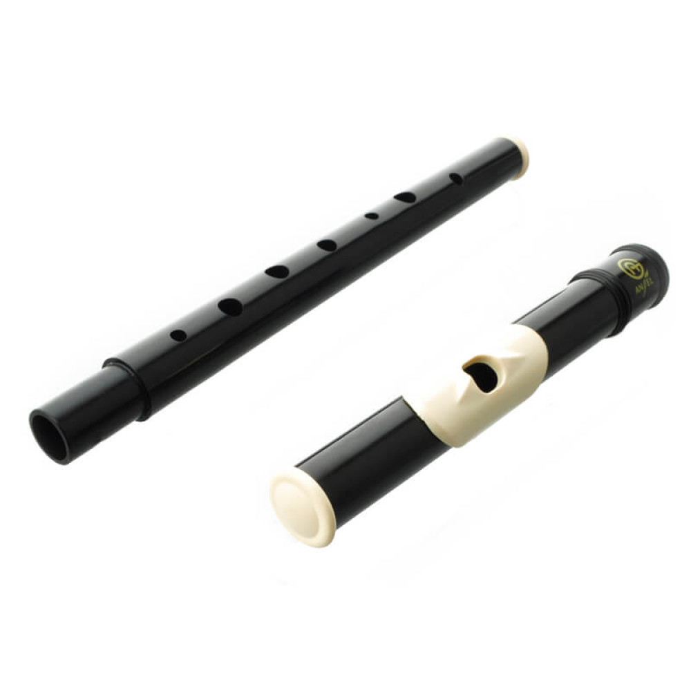 Flauta travesera en do, tipo Pifano de dos piezas, elaborado a partir de ABS color negro con embocadura marfil.