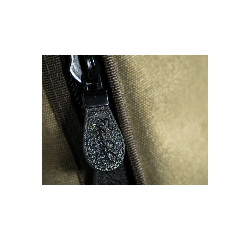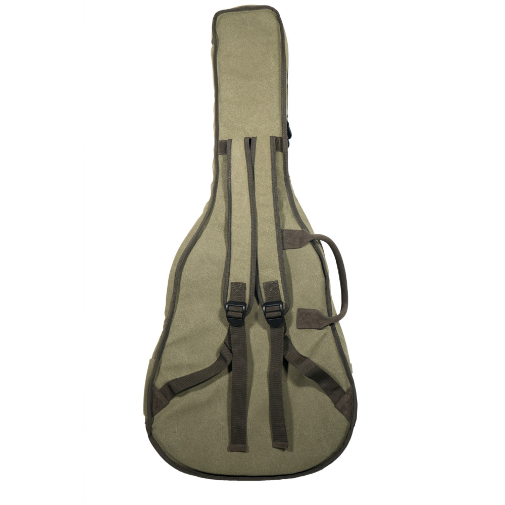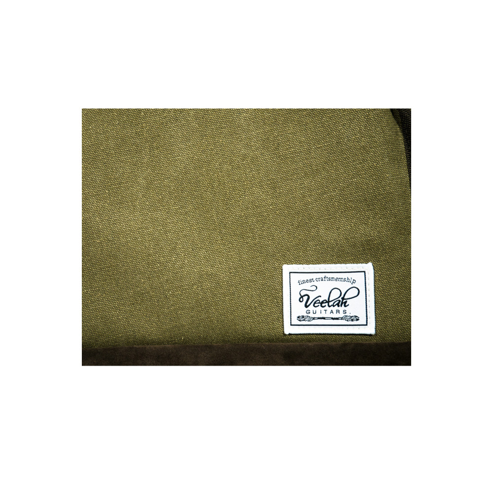 Color verde, textura con algodón interior y acolchado de alta densidad de 15mm. Forro de terciopelo de alta calidad con cremallera personalizada. Correas tipo mochila de máxima seguridad, asas muy cómodas y base con protector de cuero.