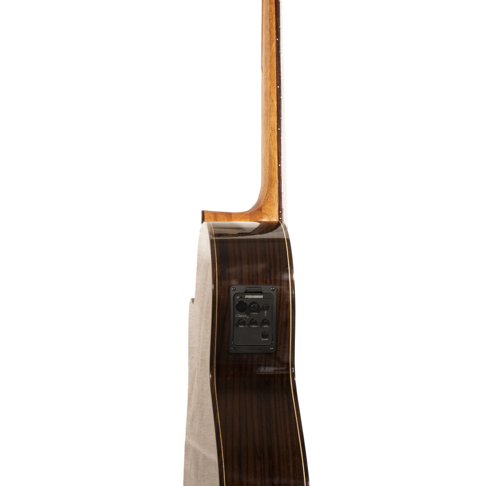Con un diseño Cut-Away, la N300CE+ de Altamira cuenta con una tapa sólida de madera de cedro, fondo y aros de palosanto, cuello de caoba africana y un precioso acabado brillante.