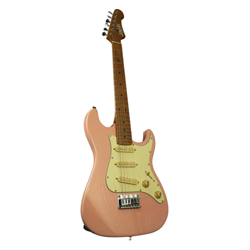 La guitarra está cargada con una configuración tradicional SSS (triple bobina simple), cableada a través de un interruptor de 5 vías y controles de volumen y tono, dando acceso a una amplia gama de sonidos.