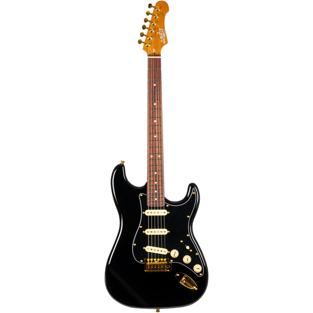 Con un cuerpo sólido de tilo y un acabado negro brillante, la JS-380 destaca por su diseño moderno y elegante. Su mástil de arce y diapasón de palisandro ofrecen una comodidad excepcional y una respuesta rápida para tocar todo tipo de géneros musicales. Equipado con pastillas single-coil, este modelo te brinda una amplia gama de tonos, desde sonidos limpios y cristalinos hasta potentes distorsiones.