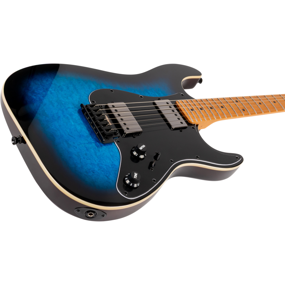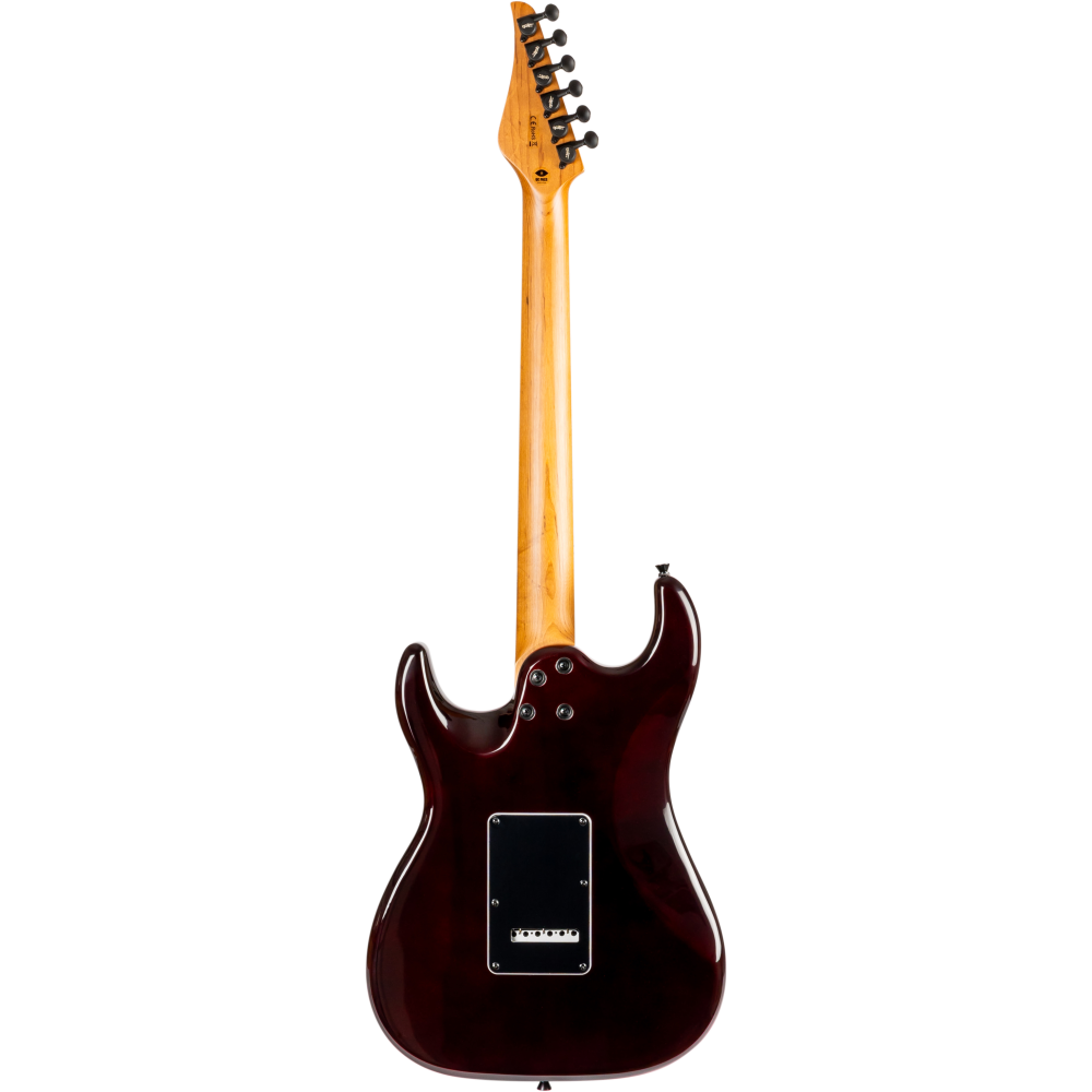 La Jet JS450-BLB Blue Burst destaca por su tapa de arce flameado y cuerpo de álamo tostado, ofreciendo gran profundidad tonal y estilo. El mástil Canadian roasted maple Modern C y diapasón de palisandro aportan resonancia y tacto profesional.