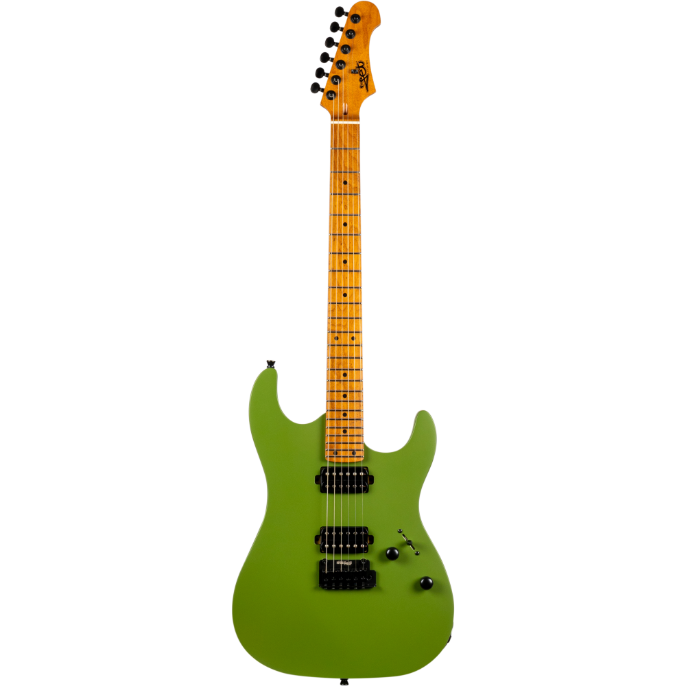 La JET JS-500 MGR es una guitarra eléctrica diseñada para músicos que buscan potencia y versatilidad. Incorpora pastillas humbucker Alnico que ofrecen un sonido rico y definido. Su cuerpo de álamo tostado, diapasón de arce tostado y puente Wilkinson Tremolo aseguran comodidad y precisión en cada interpretación.