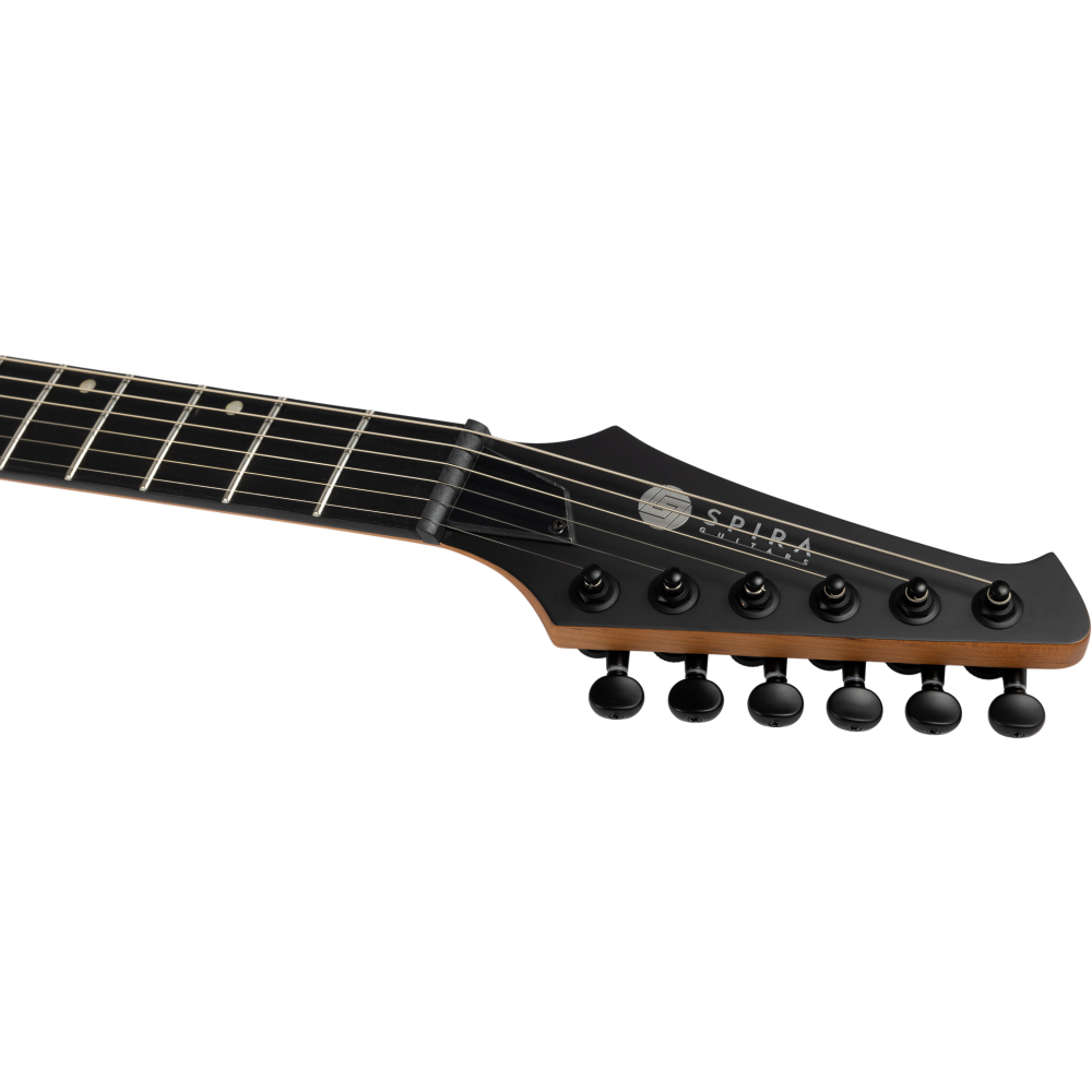 La Spira S400 MGR es una guitarra eléctrica moderna con un elegante acabado negro satinado. Parte de la Serie 400, está diseñada para guitarristas que buscan versatilidad y estilo.
