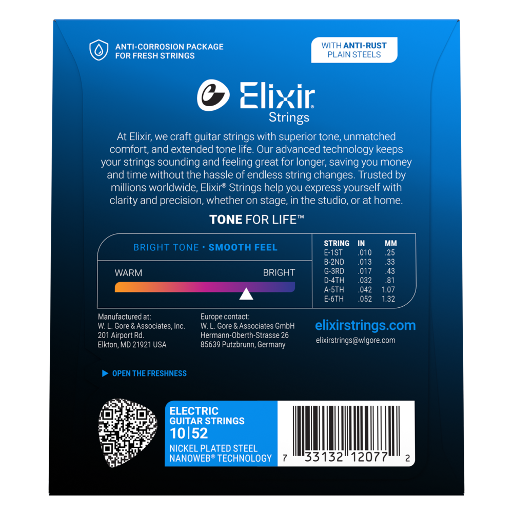 El juego de cuerdas Elixir 12077 ofrece un equilibrio ideal entre versatilidad y potencia. Su combinación de calibres Light-Heavy, junto con el recubrimiento NANOWEB, proporciona una respuesta dinámica y un tono duradero, ideal para guitarristas que buscan ataque definido en graves sin perder comodidad en agudos.