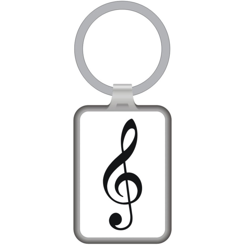 «Llavero de metal rectangular blanco con clave de sol en negro 7,5 x 3 cms»