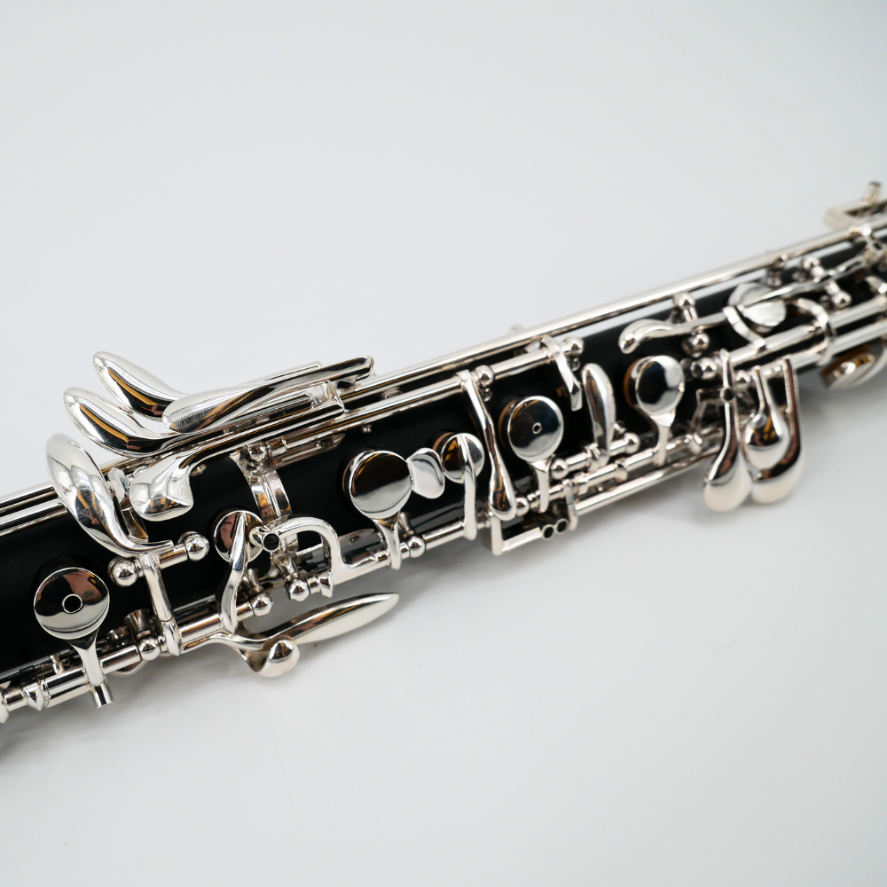 Este modelo se entrega con un completo set de accesorios: estuche rígido forrado en su interior, funda con asas reforzadas para mayor comodidad en el transporte, y un kit de mantenimiento que permite conservar el instrumento en óptimas condiciones. Una excelente elección para quienes se inician en el mundo del oboe con garantías de calidad.