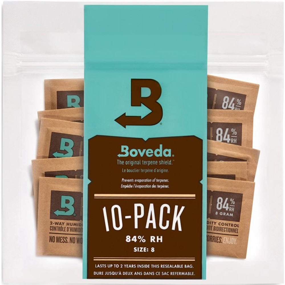 La tecnología bidireccional de Boveda permite tanto la absorción como la liberación de vapor de agua según el entorno, sin necesidad de mantenimiento, recargas ni activación. El formato Size 8 es ideal para cajas de cañas o estuches de pequeño volumen (hasta 30 g de contenido). Los sobres deben reemplazarse aproximadamente cada 60 días o cuando se sientan rígidos al tacto.