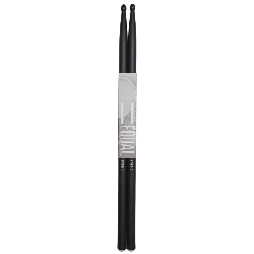 Par de baquetas Equal H2 fabricadas con fibra de carbono negra, ofreciendo las mismas proporciones y peso que las baquetas de madera tradicionales, pero con una resistencia prolongada ante el desgaste intensivo.