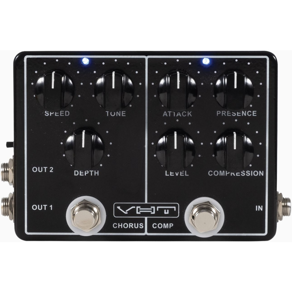 El compacto y fácil de usar VHT Dyna-Chorus Dual Pedal presenta funciones de coro estéreo analógico y compresor completamente independientes. La sección del compresor se basa en un diseño clásico de amplificador de transconductancia con mejoras modernas y mejoras adicionales. La sección Chorus tiene una segunda toma de salida que se puede configurar para operación húmeda o seca. Ambas secciones tienen interruptores de pie de bypass verdadero independientes.