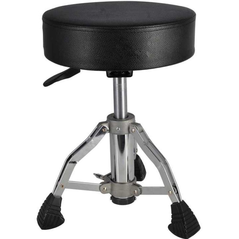 Este taburete infantil cuenta con un sistema de elevación hidráulico que permite ajustar la altura entre 36 y 43 cm, ideal para adaptarse al crecimiento del niño o al tipo de batería infantil. Su asiento redondo, acolchado y recubierto de cuero de poliuretano garantiza una experiencia cómoda incluso en sesiones prolongadas de práctica o clases. Las patas dobles de metal con gomas antideslizantes aportan máxima seguridad y firmeza sobre cualquier superficie.