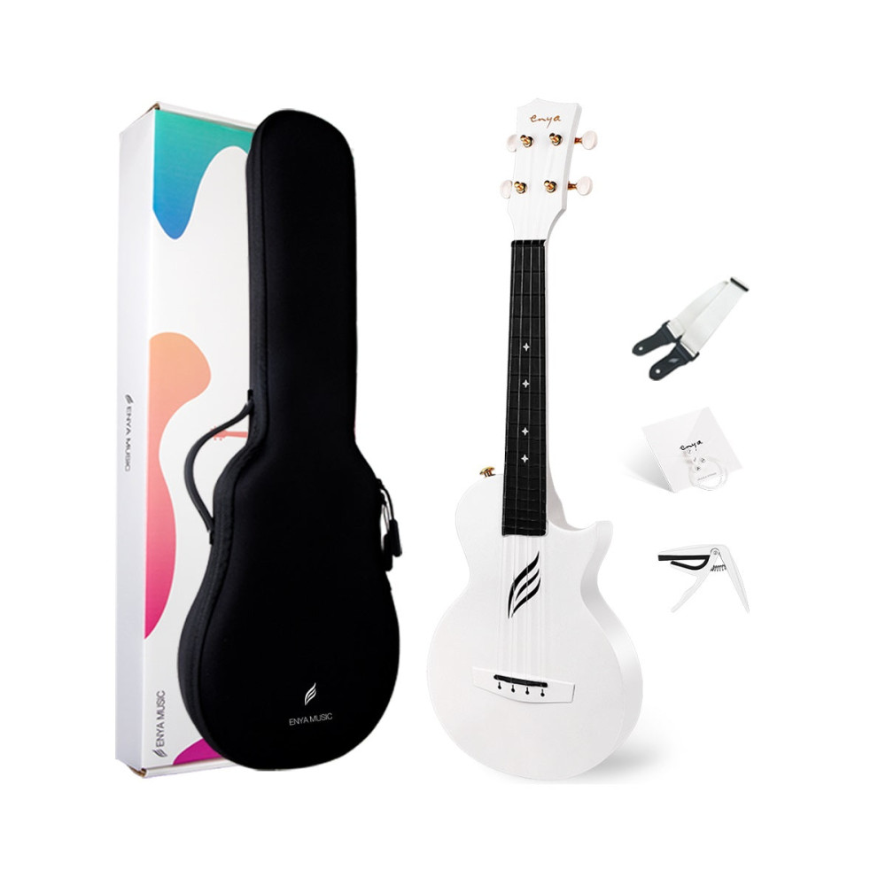 Ukelele elaborado principalmente de fibra de carbono y policarbonato. Tiene un acabado satinado y tan solo pesa 566 gramos.
